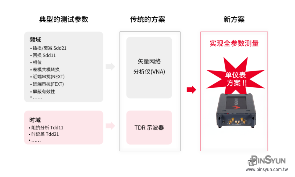 支援時域 (TDR) 與頻域 (S 參數) 全參數測試