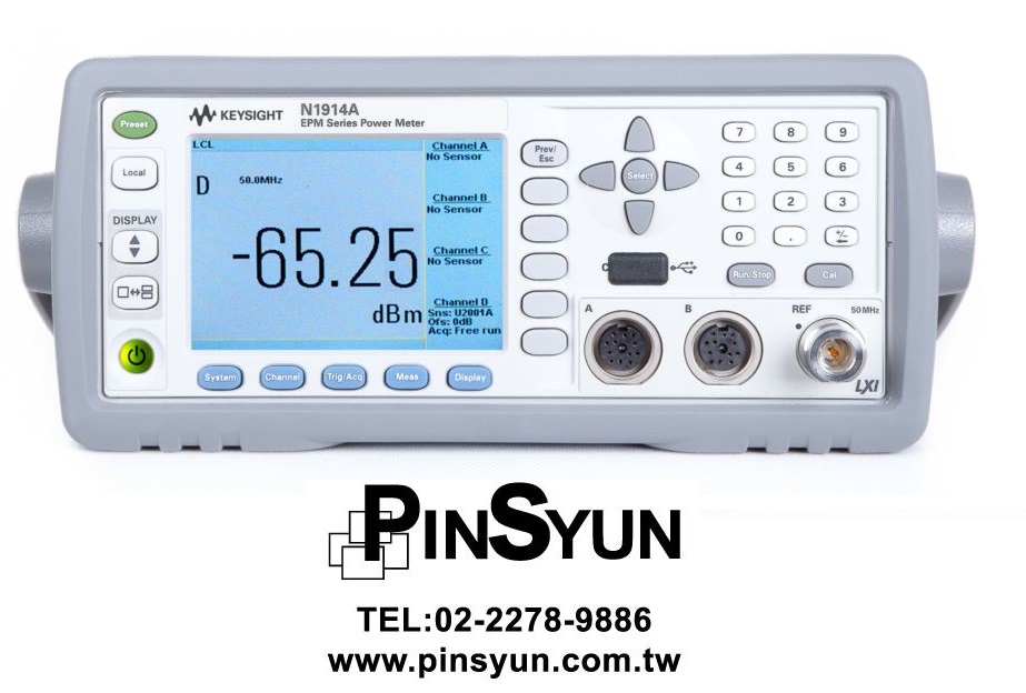 N1914A-201 | Dual channel average power meter with VGA, trigger in/out, 1 front and 1 rear USB port |